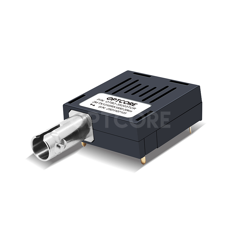 The OTB2-xx20xxCR family of 1×9 optical transceivers from Optcore provides the system designer and manufacturers with products to implement a range of industrial control, special low data rate Ethernet designs at the 2Mb/slow rate. This series of fiber optic transceivers are supplied in the industry-standard 1×9 SIP package style with a simplex SC/ST/FC or FC Pigtails type connector interface. The transceivers are high-performance, cost-effective modules with a TTL data interface that support a data rate of 2Mbps and a maximum 20km transmission distance over single mode fiber cable (SMF). The OTB2-xx20xxCR series TTL 1×9 Bi-directional optical Transceivers help you convert copper signals to optical fiber. They are usually used for serial communications over fiber like RS-232/422/485 serial to fiber media converters and industrial Ethernet networks to fiber networks communications like industrial fiber optic converters and Ethernet switches.