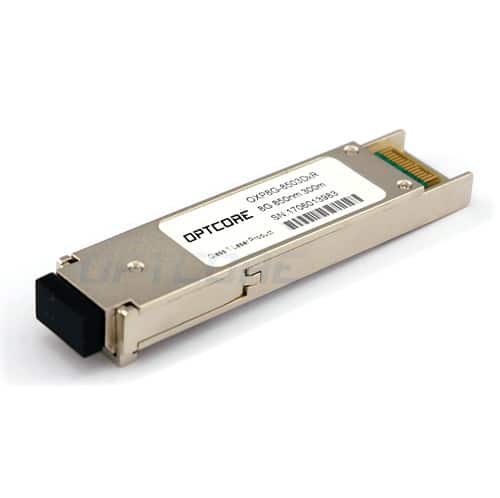 Optcore’s OXP8G-8503DCR is a high performance and cost-effective XFP SR transceiver module for 8 Gigabit Fibre Channel (8GFC) applications, which provides links up to 300m over OM3 multimode fiber. This 8G XFP transceiver module features a highly reliable 850nm VCSEL transmitter and PIN photo-detector into duplex LC optical connector. The OXP8G-8503DCR module complies with XFP MSA specifications and Fiber Channel FC-PI-4 800-M5/M6/M5E-LC-I specifications. It’s suitable for use with SAN switches, routers, network interface cards (NICs) and other storage networking equipment that support XFP slot.