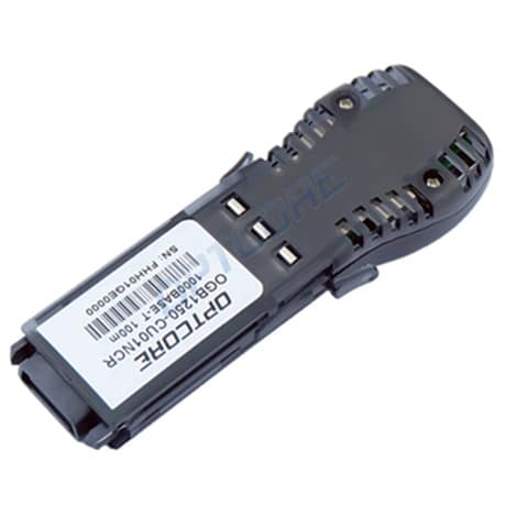 Optcore’s OGB1250-CU01NCR-ATE is a high performance and cost-effective Gigabit Interface Converter (GBIC) module for 1000BASE-T Gigabit Ethernet and 1G Fiber Channel application. It fully complies with the GBIC Multi-Sourcing Agreement (MSA) and can be used on the MSA compliant networking equipment. The 1000BASE-T GBIC module is tested to be compatible with Allied Telesis networking equipment with GBIC slots such as Ethernet Switches, Ethernet Routers, Network Interface Cards (NICs). The OGB1250-CU01NCR-ATE is an ideal equivalent to Allied Telesis AT-G8T 1000BASE-T Copper GBIC transceiver module but with much lower price, which provides a reliable compatible GBIC transceiver optics solution for system integrator, distributors and end users in network infrastructure and fiber cabling. The 1000BASE-T GBIC module supports 1000Mbps data rate up to 100 meters reach over unshielded twisted-pair category 5 cables.