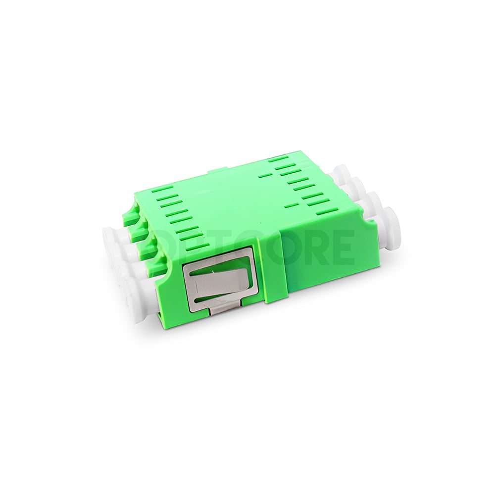 LC to LC Quad Fiber Optic Adapter (Singlemode, Plastic, APC, Green, Without Flange)