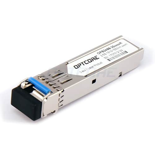 Optcore’s OPB2488-3520xCR is a hot-pluggable SFP Bi-Directional (BiDi) transceiver module specifically for 2.5Gb/s duplex optical data communications such as SDH STM-16/SONET OC48 and 2x Fibre Channel intermediate reach (IR-1) application. This BiDi SFP module provides 20km transmission distance over the single strand of single-mode fiber. Compared with commonly used dual fiber SFP modules, this BiDi SFP transceiver allows end users to reduce the total cost on fiber cabling infrastructure by requiring half of the fiber cables, providing increased transmission capacity very convenient without installing new fibers.